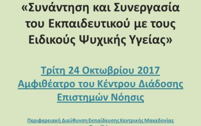 Την Τρίτη 24 Οκτωμβρίου 2017 θα πραγματοποιηθεί επιμορφωτική ημερίδα υπό την αιγίδα της Περιφερειακής Διεύθυνσης Εκπαίδευσης Κεντρικής Μακεδονίας σε συνεργασία […]